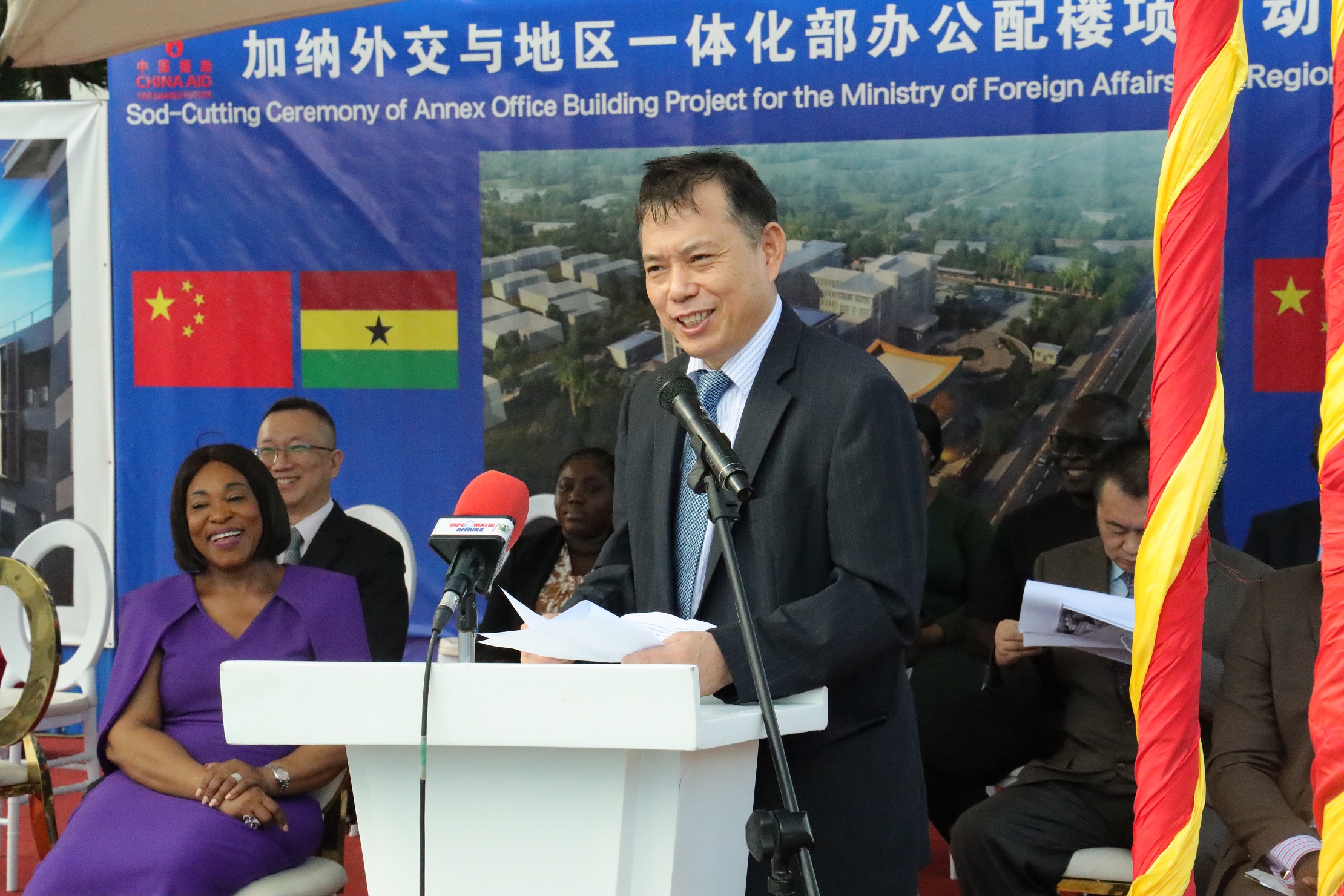 驻加纳大使卢坤和加纳外长博奇韦出席 中国援助加纳外交部配楼项目开工仪式